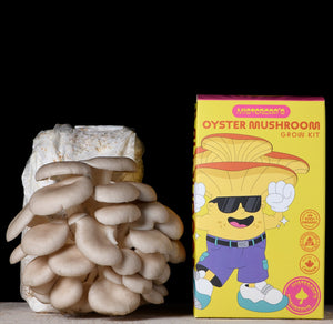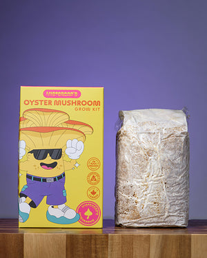 This kit contains a block of live oyster mushroom (Pleurotus ostreatus) mycelium.